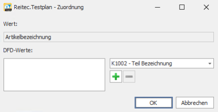 . Im sich öffnenden Dialog können dem gewählten Projektparameter nun ein oder mehrere DFD-Eigenschaften zugeordnet werden.