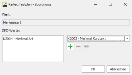 Die Zuordnung erfolgt über die Schaltfläche . Im nachfolgenden Dialog können dann ein oder mehrere DFD-Eigenschaften gewählt werden.
