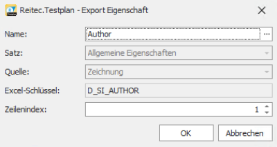 In diesem Bereich legen Sie fest, welche Dateieigenschaften exportiert werden sollen. Damit die Dateieigenschaften exportiert werden müssen Sie über den Schlüssel einem Projektparameter zugeordnet werden. Siehe Kapitel Projektparameter