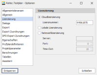 Für die Netzwerklizenzierung wählen Sie bitte den entsprechenden Punkt in den Optionen und tragen den Servernamen und den Port, auf dem der Reitec.LicenseService installiert ist, ein.