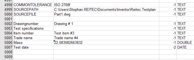 In der exportierten Excel-Datei sind Projektparameter ab Zeile 5000 zu finden.