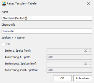 Über die Schaltflächen 'Plus' und 'Stift' gelangen Sie in den Bearbeitungs-Dialog für Tabellen-Definitionen, dort können Sie folgende Einstellungen vornehmen: