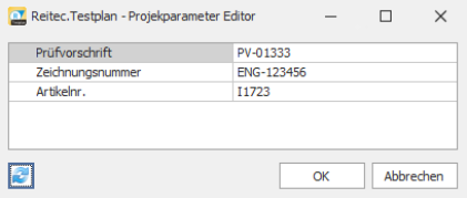 Zusätzlich zu den Daten der Prüfmerkmale können auch weitere Projektparameter wie z.B. die Zeichnungsnummer erfasst werden. Die Projektparameter werden beim Export ausgegeben und stehen bei der Prüfplanerzeugung zur Verfügung.