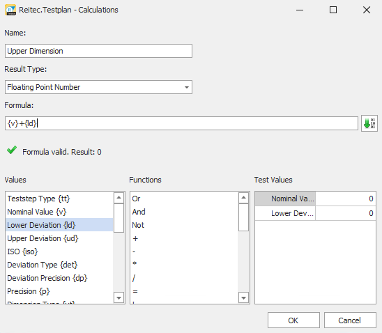 The test values can be used to test whether the syntax is correct and whether the calculation delivers the desired result.