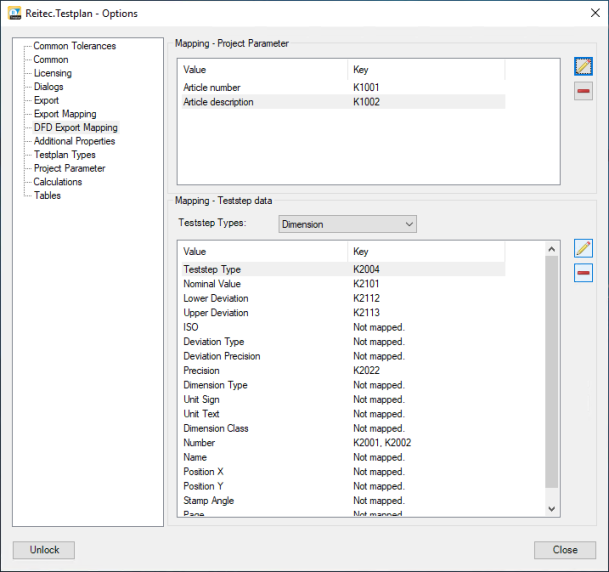 In the section “DFD export assignments”, you can now define how characteristic data, property values, project parameters and calculated values are assigned to DFD properties.