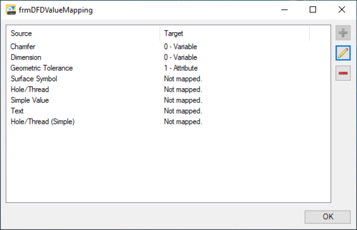 Some DFD properties only allow certain values (check boxes), in which case a further assignment must be defined at value level. This is done with the button .