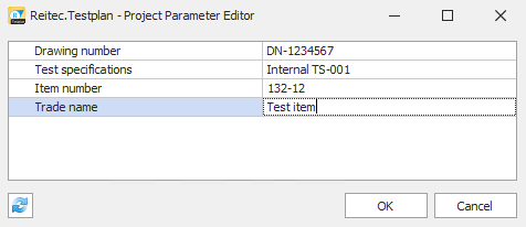 If a project parameter is linked to a file property, the current data can be read from the drawing using the “Update” button.