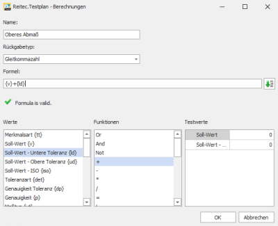 Mit Hilfe der Testwerte kann getestet werden, ob die Syntax stimmt und die Berechnung das gewünschte Ergebnis liefert.