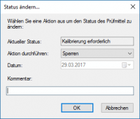 the status of a gauge can be changed. With a time-based status, e.g. calibration, the date can also be set. When changing the status, an entry is automatically created in the history, which can be supplemented by a comment.