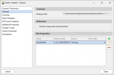 In this area you define which file properties are to be exported. In order for the file properties to be exported, they must be assigned to a project parameter via the key. See Chapter Project Parameter