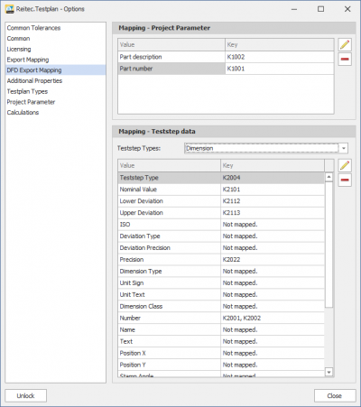 In the “DFD Export Mapping” section you can now define how characteristic data, property values, project parameters and calculated values are assigned to the DFD properties.