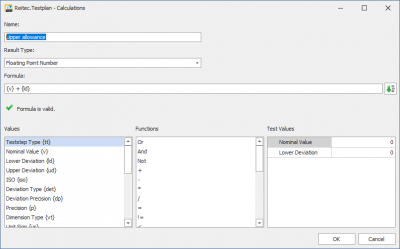 The test values can be used to test whether the syntax is correct and the calculation produces the desired result.